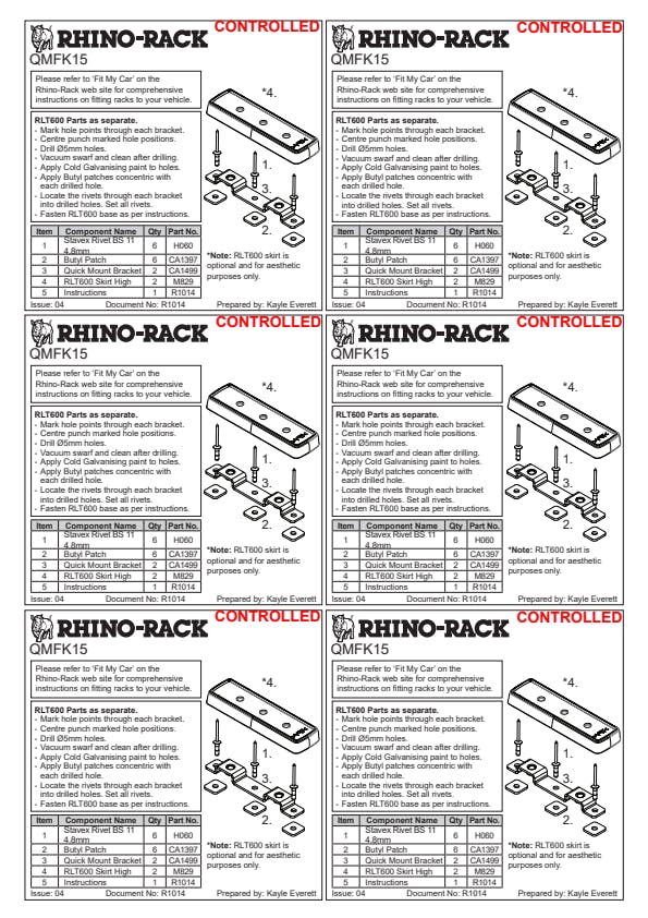 The Quick Mount™ Roof Bracket provides a permanent or fixed mounting point for the roof rack to attach to. It can only be used in conjunction with the RLT600 Quick Mount™ Leg.